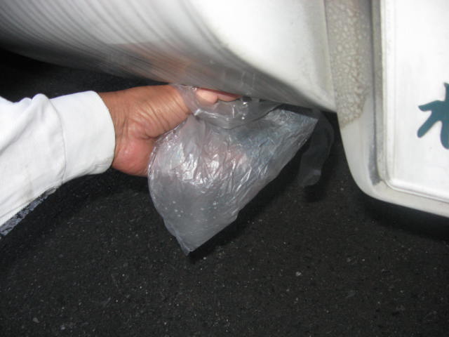| A呼気を袋に吹き込み、ガシャガシャ振ると白濁した。