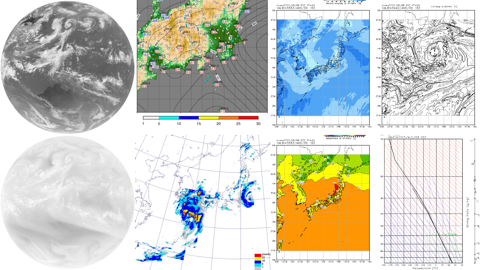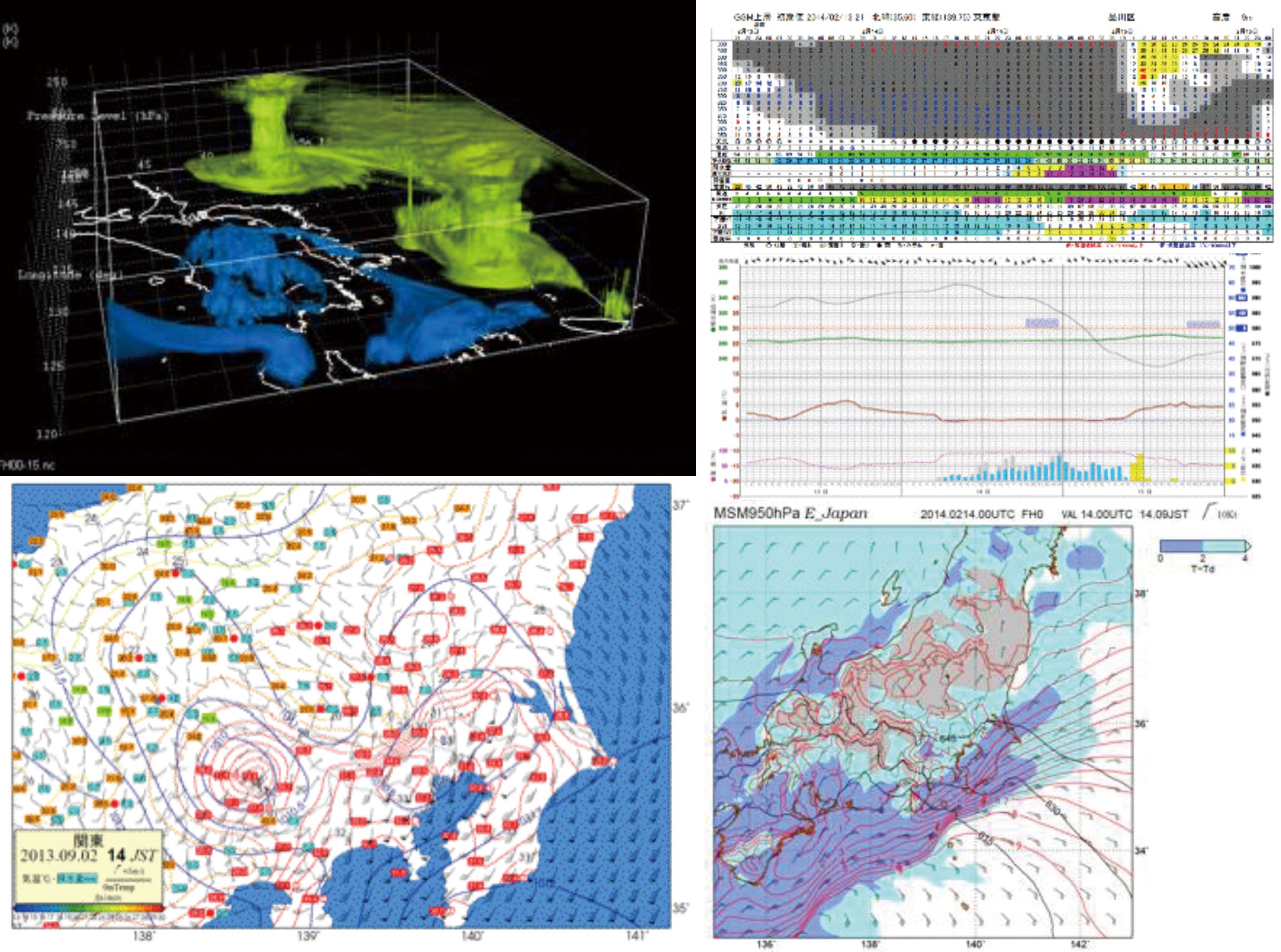 気象衛星画像、 実況、GPV、エマグラム、各種データの重ね合わせ左右並べての表示などを提供しています。