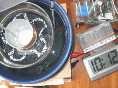 今回の実験は、2010年5月12日、温度変化を室温に任せて、温度平衡に至るまで行い、どの様な現象が現れるかを観察しました。 このため、4時間連続運転の実験を実施しました。 使用した装置は、「装置2号機」です。4時間の連続運転に耐えます。 装置2号機:電源=家庭用AC100V壁電源をDCへ変換する装置を使う。 駆動装置=DCモーターの回転を回転円盤へ直接伝える。 円盤の回転数は、DC電源電圧を加減することにより、必要とする範囲内で、任意に設定可能なものである。 装置の回転数=10RPM 水槽の初期温度:外周=52.3℃(湯)、中心部=1.7℃(氷水)。 室温=22〜23℃でほぼ一定、 湿度=49〜51%でほぼ一定、 風=室内で無風 温度計測=外周の高温部分及び中心の冷水部分の2箇所を、同時的に4時間連続計測した。(写真に写しこんである) なお、「装置1号機」による実験は、こちら を参照してください。 → 「装置2号機」による実験は、こちらです。 実験項目および内容は、随時追加、修正、改良しています。 Originated 2010-05/16 Last Updated 2010-05/16(4時間連続)