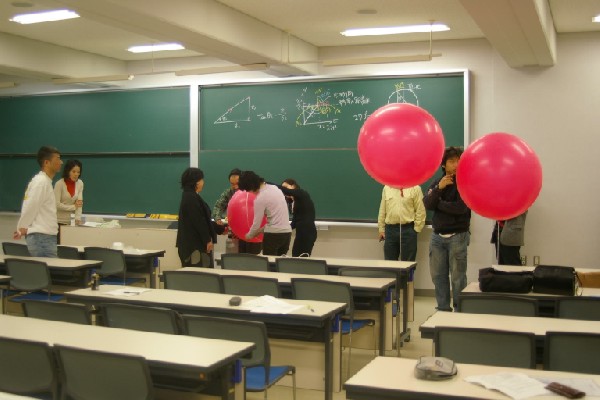 ■ヘリウムガスを風船に充填し、直径70cm程度の気球にする。