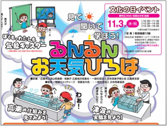 主 催:江波山気象館、広島地方気象台、日本気象予報士会広島県支部