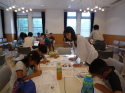 | 日時:2010年7月4日(日) 13:30〜16:00 会場:江波山気象館 オリエンテーションルーム 参加者:こども・・・13名(中学1年生 1名、小学5年生 4名、小学4年生 6名、小学3年以下の付き添いのこども 2名) 付添いの保護者有志・・・8名 (男性3名 女性5名) 気象予報士・・・9名(男性5名 女性4名) |