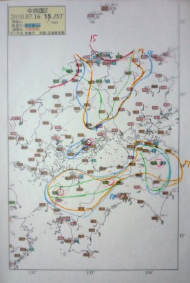 等温線(25℃)等圧線(1016hPa)、300hPa等相当温位線(330K)を出席者全員が