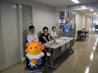 気象台職員の方々と一緒にミーティングの後、1階玄関での受付と来場者誘導、