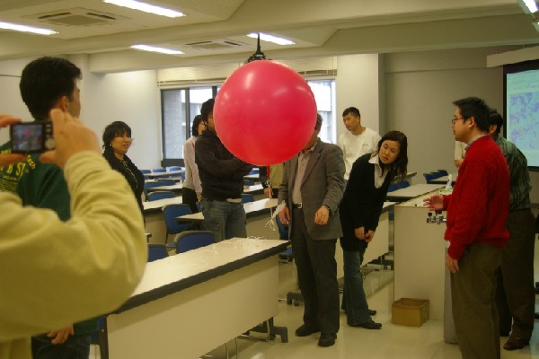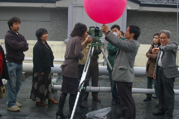 ■ パイロットバルーン観測とは、風船にヘリウムガスを充填し、飛翔させ、これを 経緯儀にて方位角、高度角を測定し、気球の速度、到達距離、等を 求めるものです。浮力の設定の程度により、気球の上昇速度が変わ ります。 ■ 筆者は、2007年03月24日、関西気象予報士会京都部会主催の 「パイロットバルーン観測勉強会」に出席し、観測を実地見学した ので、その様子を写真で紹介します。