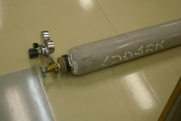 ■ガスを抜きながら、浮力を規定値にする。 気球にぶら下げた「重り」と気球の「浮力」が釣合うと、気球は空中に静止する。 今回は、気球の上昇速度=200m/分になるよう、調整・設定されました。 天井に接触すると、破裂することがあるらしい。