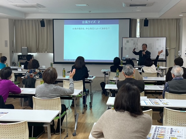 上永谷駅前地域ケアプラザ(2026/1/19) 元町P 2026.01.21 防災出前講座 元町プロジェクト 気象と防災 講演者:新井 勝也 会員 講座の雰囲気 参加者 民生児童委員(横浜市港南区永野地区) 23名