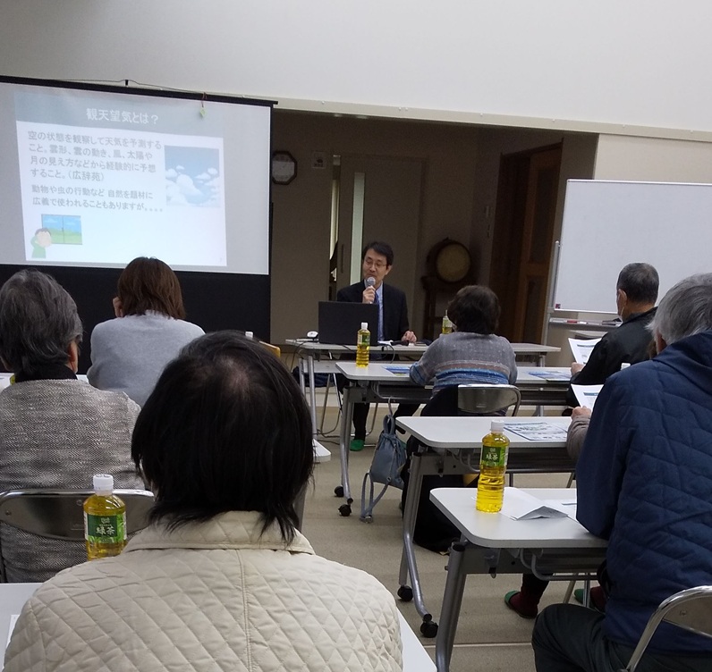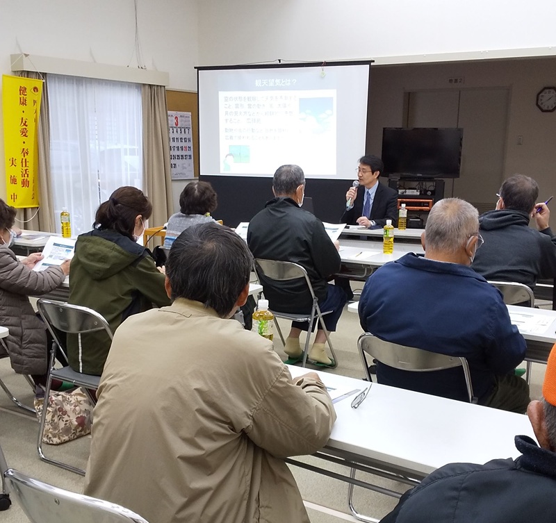 厚木市下古沢老人憩の家(2026/3/25) かなそらPDSC_0415 2026.03.252026.03.27 防災出前講座 かなそらプロジェクト 気象と防災~災害から身を守るために 講演者:山田 哲哉 会員 講座の雰囲気 参加者 小鮎地区しあわせクラブ連合会 単位クラブ他 20名