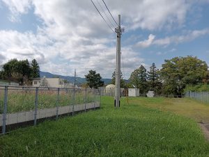 見学では、露場の近くまで歩いて行くことができ、気象観測装置の設置状況やウインドプロファイラ施設を遠目で見学しました。